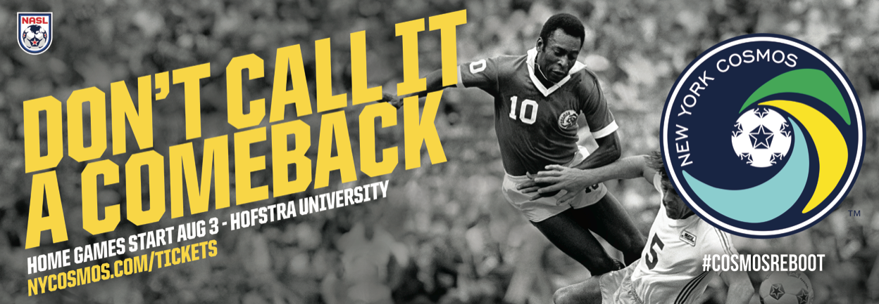 Bell & Koola was part of the creative and strategic team that created the pitch for the reintroduction of the NYC Cosmos to the NASL, which won AOR for Eyeball. B&K was instrumental in coming up with the hashtag #reboot, the CTA "Don't Call It A Comeback" and developed the OOH designs that covered the LIRR from Penn Station to Hofstra University, way out on Long Island. The reboot must have worked out well because the Cosmos won the 2013 and the 2015 NASL championships. Special thanks to T.J. at Eyeball for leading the creative on this fun project.